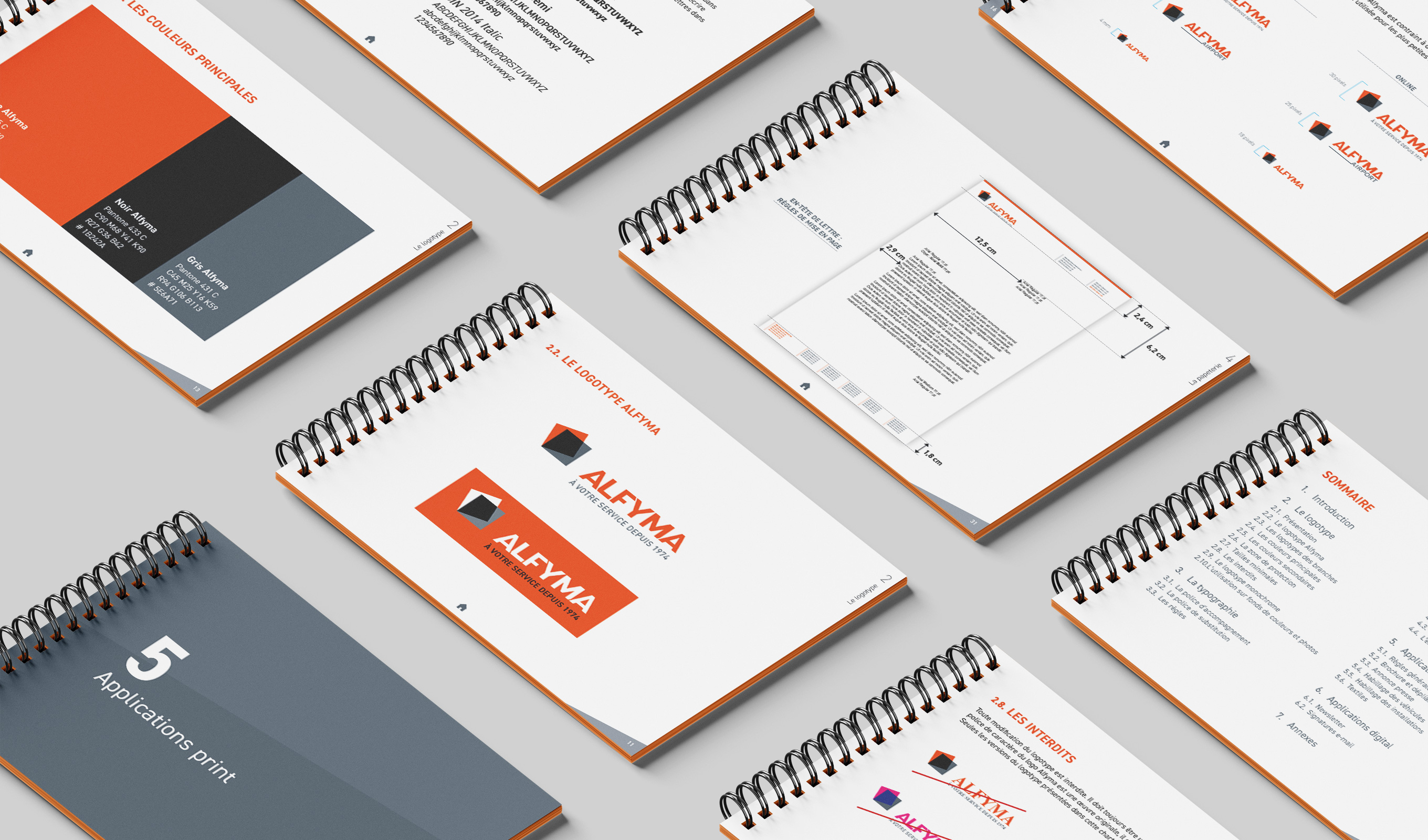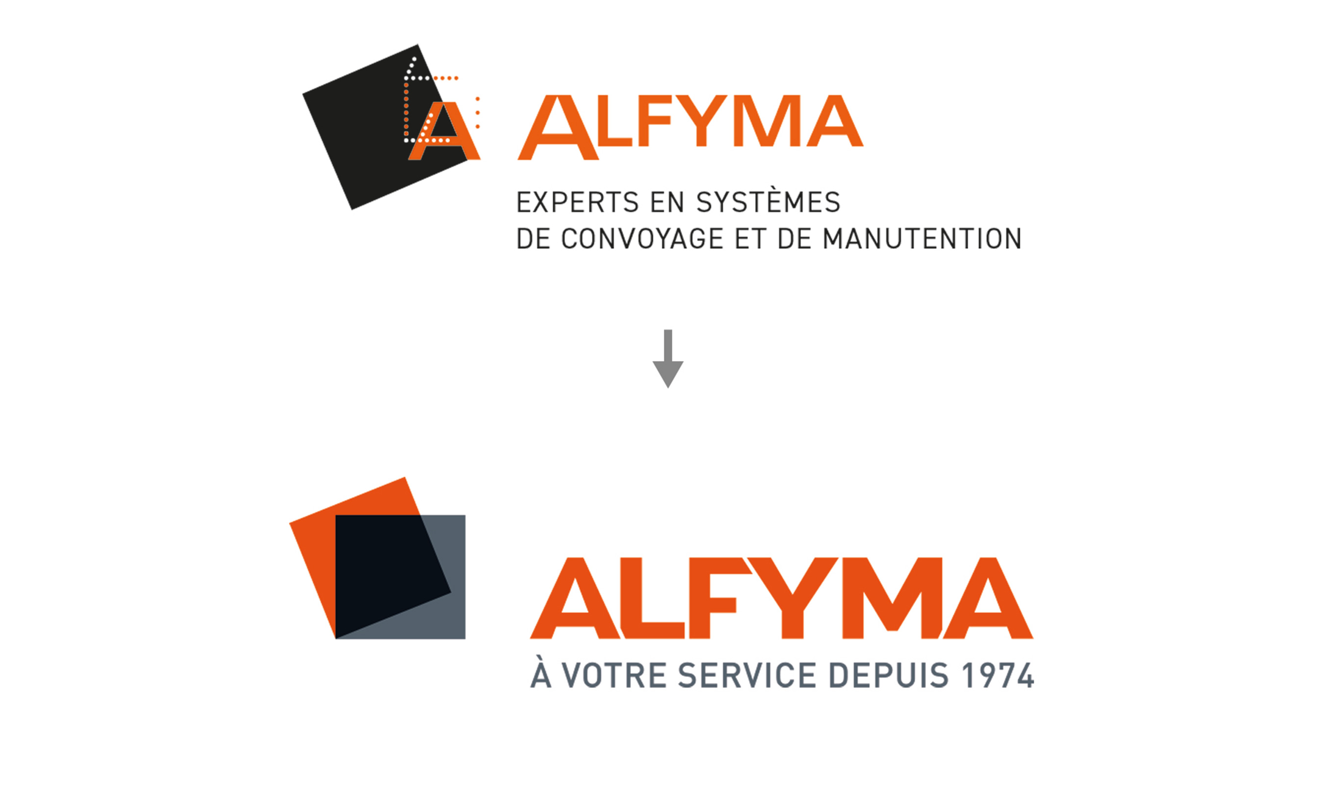 Pour permettre à Alfyma de se confronter à une concurrence internationale et de gagner toujours en visibilité, le défi de refondre le logo était incontournable. Apporter de la cohérence et de la simplicité, tant dans la forme que dans le fond, sans pour autant renier les acquis fondés depuis plusieurs années. C’est en ce sens que la charte chromatique a été préservée : les clients actuels reconnaissent rapidement les codes couleurs de la marque. Nous avons aussi rapidement décidé de garder le principe de l’inclinaison.